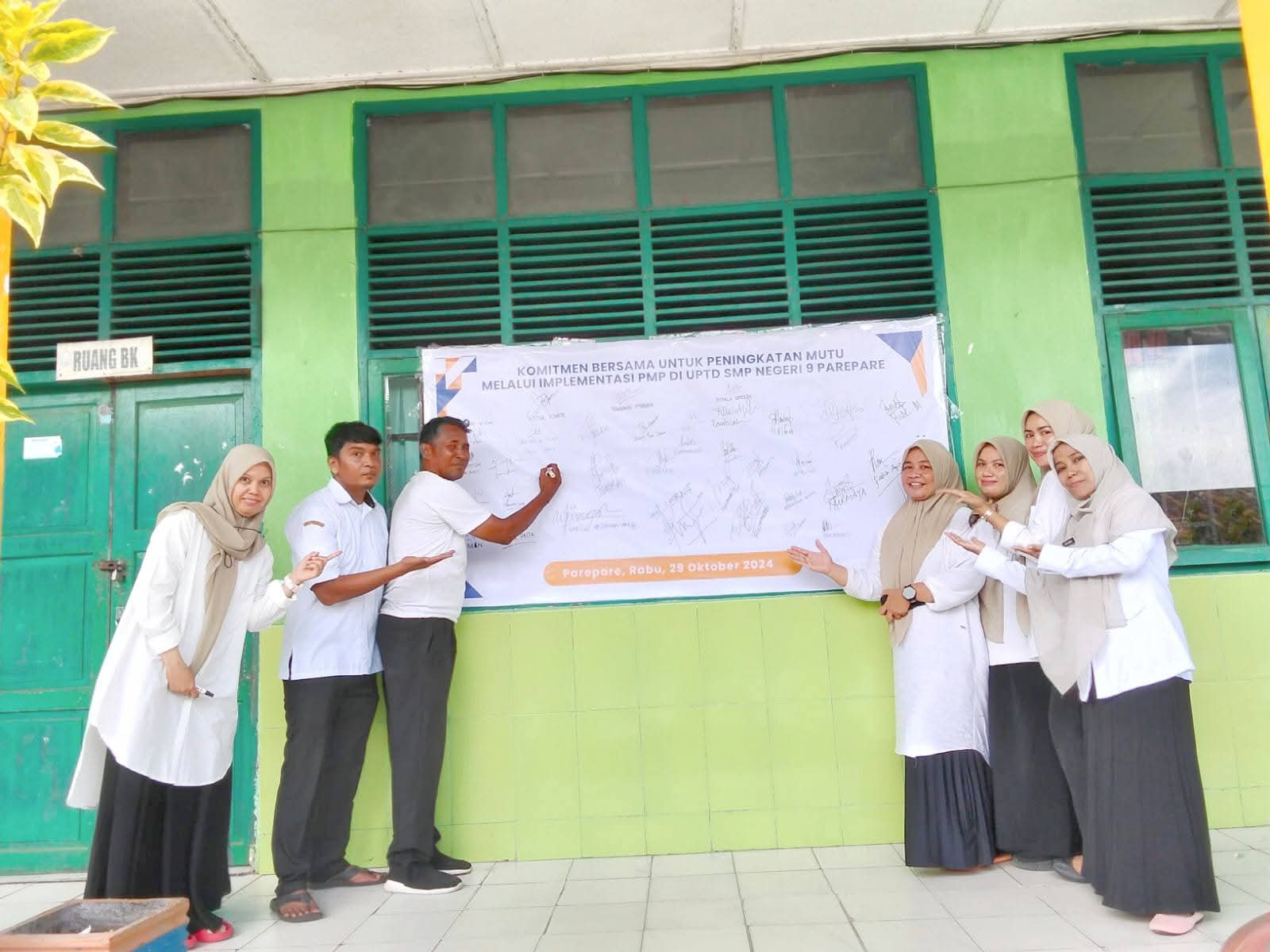 Komitmen itu ditandai dengan penandatanganan komitmen bersama untuk peningkatan mutu melalui implementasi PMP di SMPN 9 Parepare, belum lama ini.