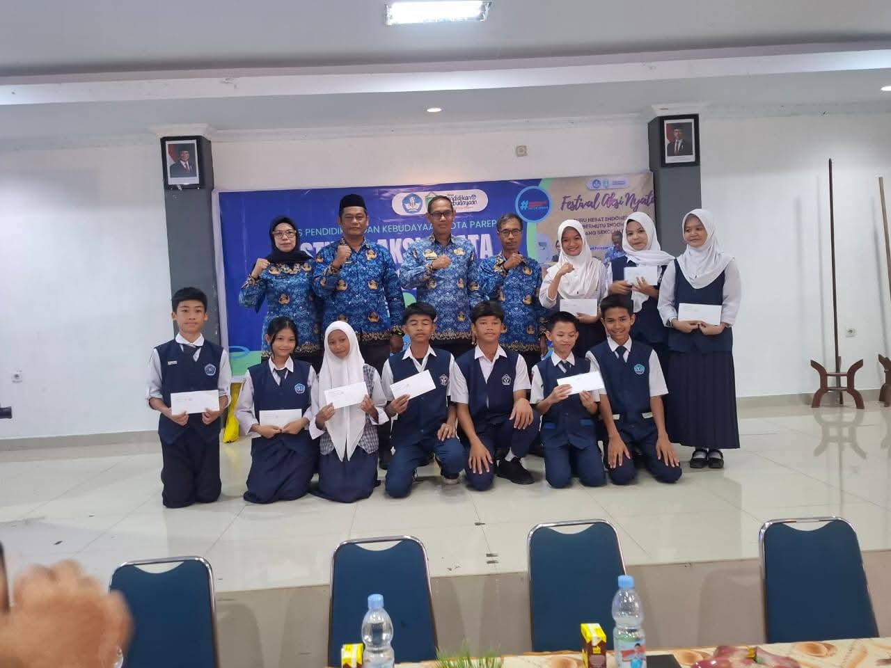 Penerimaan trofi dan uang pembinaan bagi pemenang lomba O2SN dan FLS3N, termasuk siswa SMPN 10, dihadiri langsung oleh Kepala Dinas Pendidikan dan Kebudayaan (Disdikbud) Parepare HM Makmur SPd MM, dan Sekretaris Disdikbud.