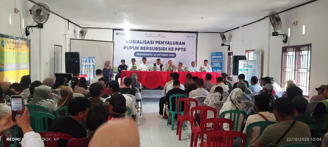 Anggota Komisi IV DPR RI Daerah Pemilihan Sulawesi Barat, Dr. Ir. H. Agus Ambo Djiwa, M.P., menghadiri kegiatan Sosialisasi Penyaluran Pupuk Bersubsidi di Aula Kantor Camat Pasangkayu, Rabu (22/10/2025).